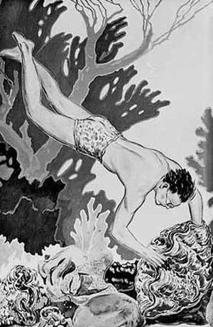 Diver Trapped by a Clam, from a drawing by Joseph M. Guerry