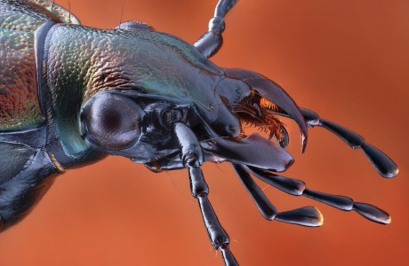 Tiger beetles (of the family Cicindelidae) are related to carabids, which are commonly called “ground beetles.” Like me, ground beetles do not fly, but they all run. These earthbound running beetles soon became my passion, to have and to hold, through the influence of my father. I accompanied him when he dug pits in the ground for catching mice and shrews, but ground beetles fell in, too. He gave me a field guide to identify them, and I soon knew them by name: the giant black Carabus coriaceus, the dark-bluish C. intricatus, the shiny copper C. cancellatus, and its look-alike C. concolor, and the deep-green C. auratus. . . The merit of those intricately sculpted beetles was not simply that they were beautiful, but also that I could find them merely by scanning the dirt wherever I walked. Even more merrily, I could run and catch them.