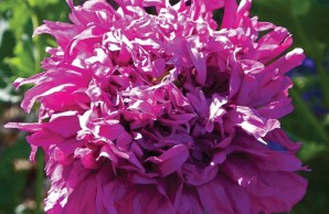 Each year I continue to favor the opium poppy in what has become an extended street-side garden. For the past two springs, I have sought seeds from local friends who also garden with opium poppies. My efforts have paid off. I now possess these color variants: pink, salmon, lavender, and dark purple. To my amazement, all did not produce different flower types. The dark purple strain, for instance, put forth only single flowers, whereas the salmon variety produced only doubles and triples. (I wonder about the genetics involved with these multiple forms. Could the trait be a result of polyploidy, that is, genome duplication? And how, when, and where did this genetic manipulation occur?) My spring garden is now kaleidoscopic. And because the garden is in full view of passersby, neighbors and even vehicles often pause in admiration. Their most common question: “What are those big flowers? Carnations?”